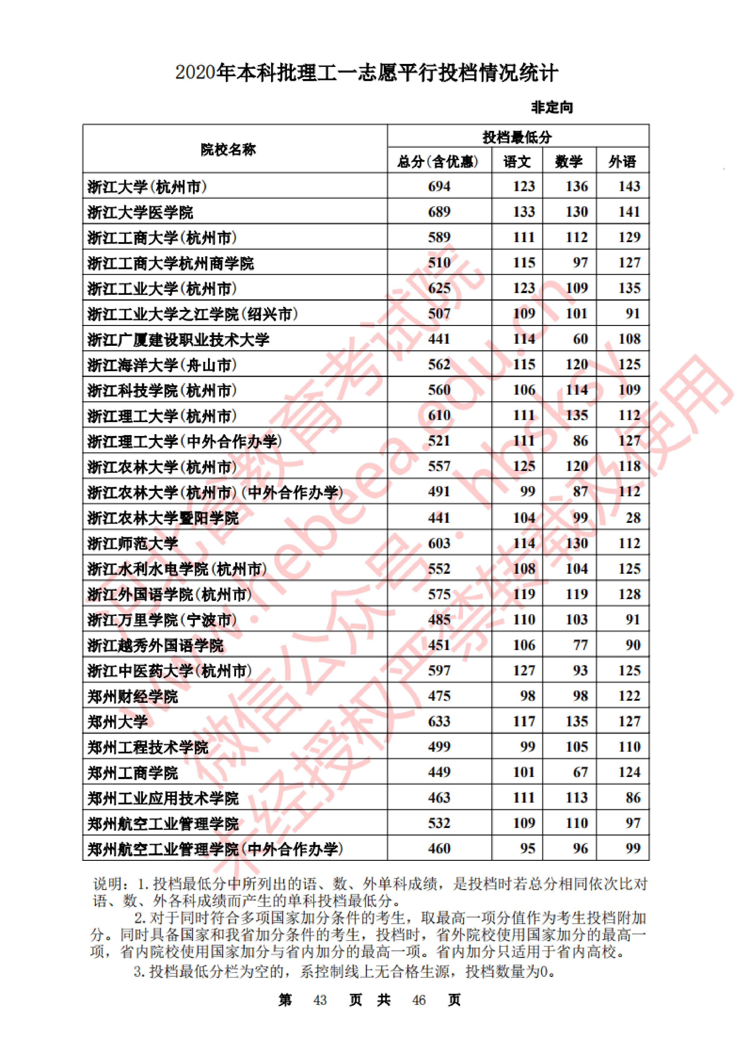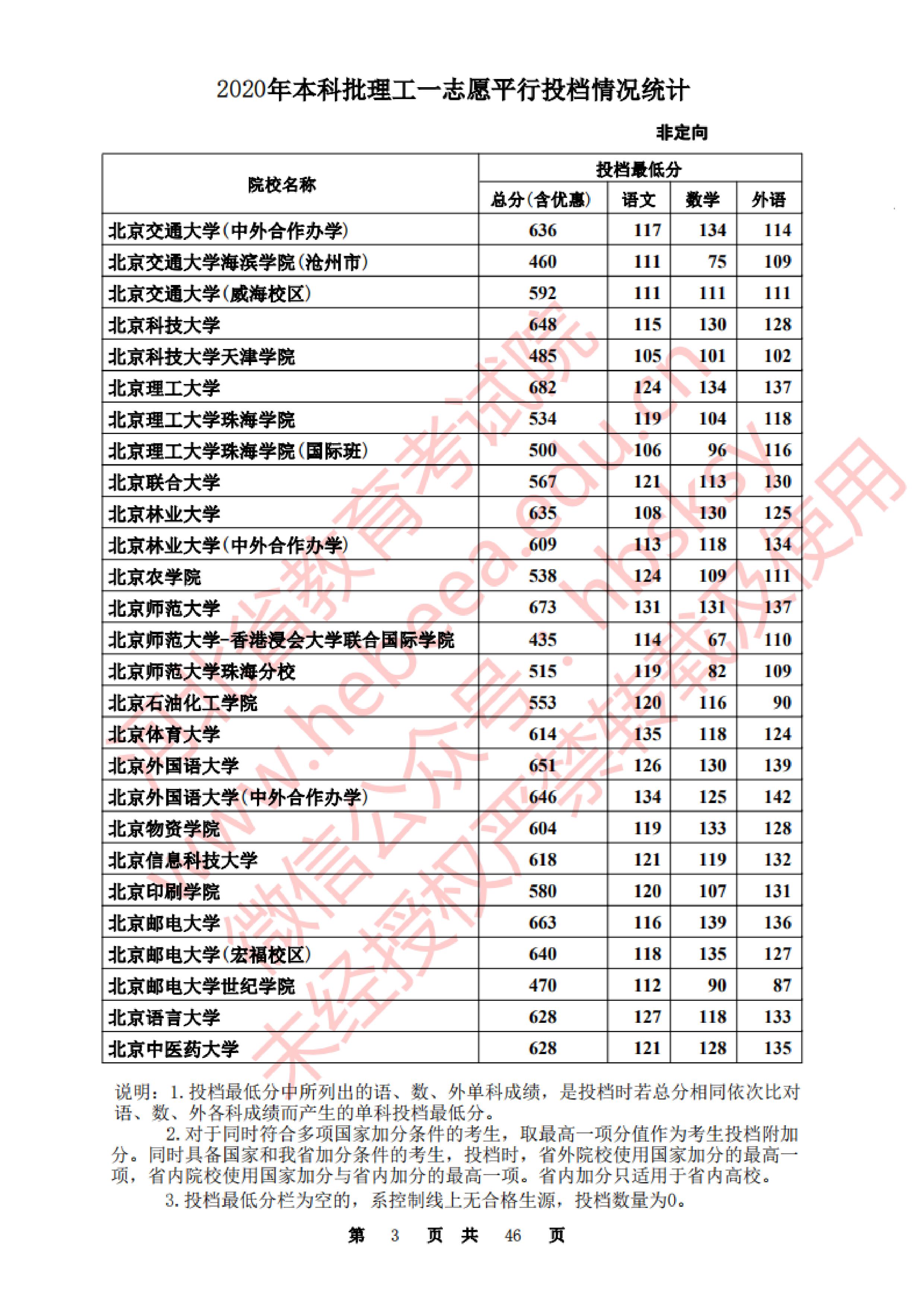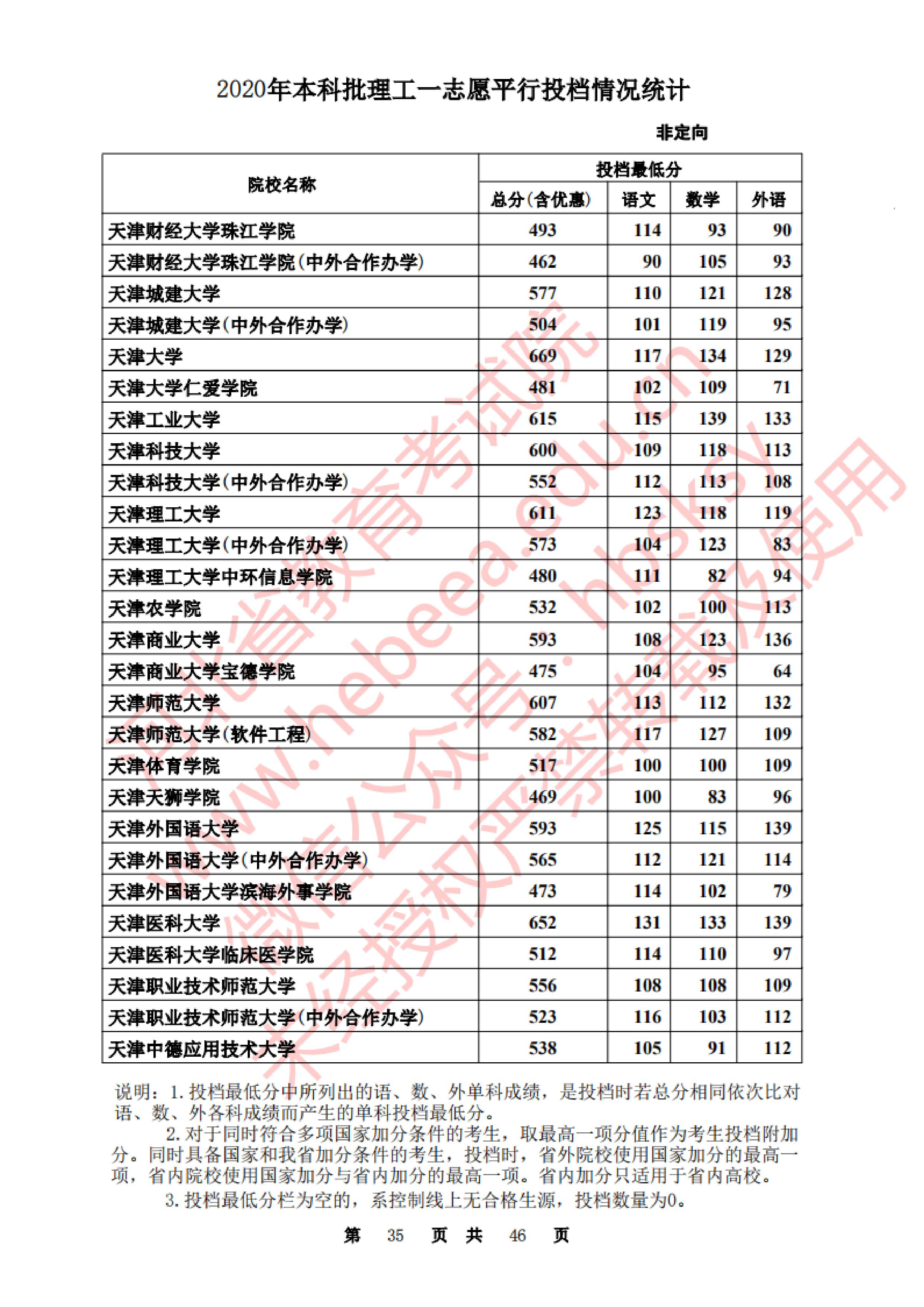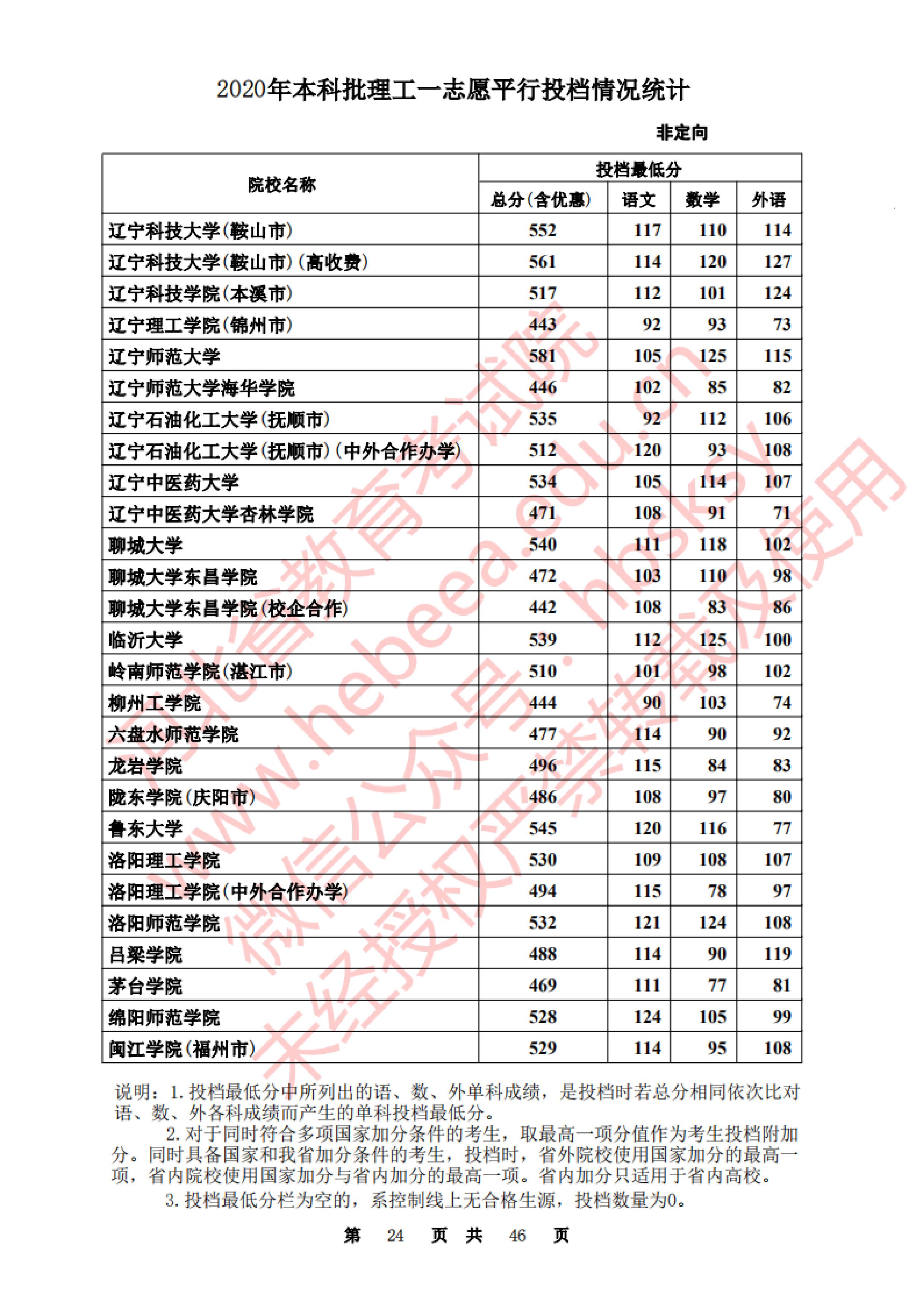 近日,河北教育招生考试院公布了2020年本科批一志愿平行投档情况统计,具体内容如下: