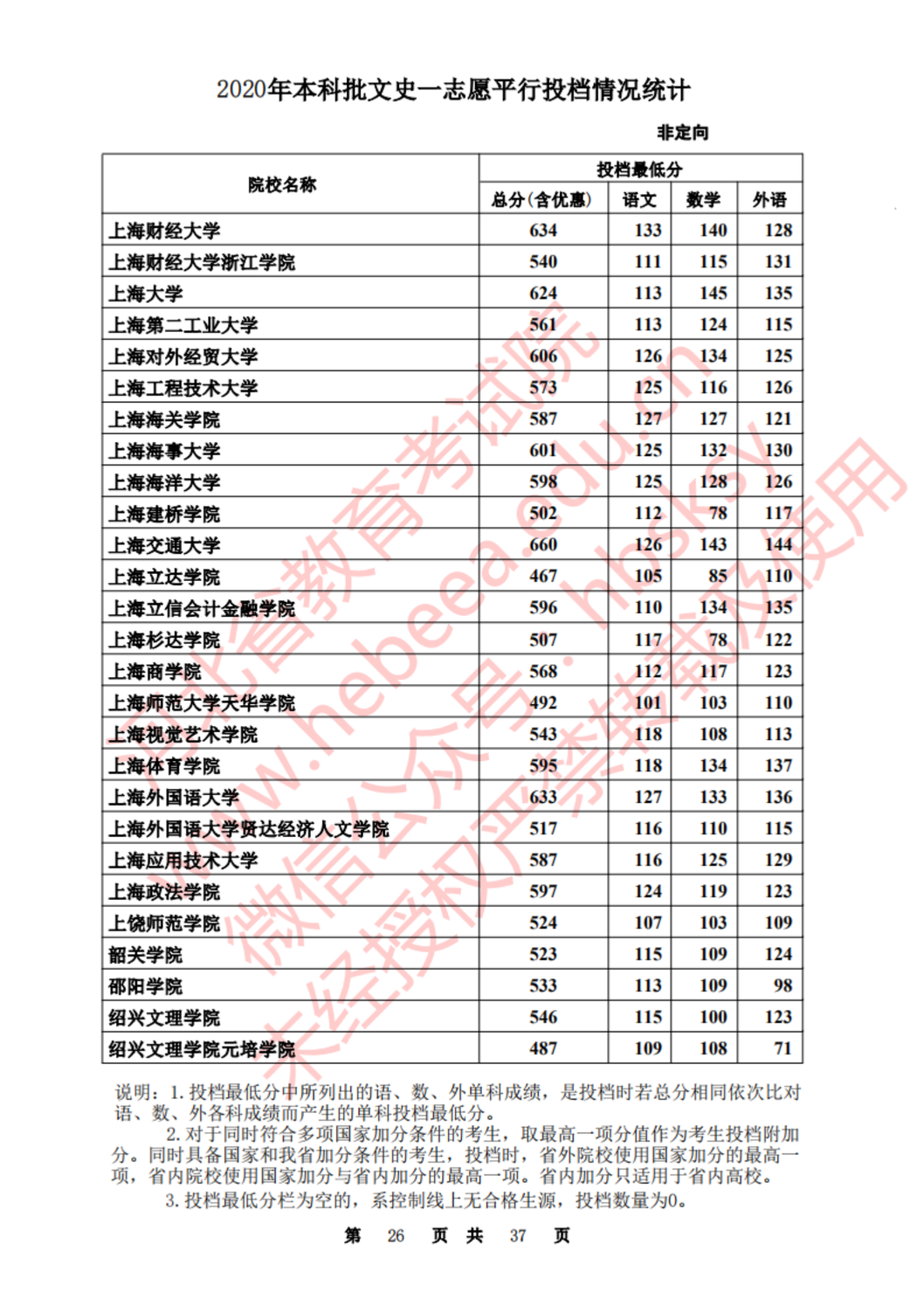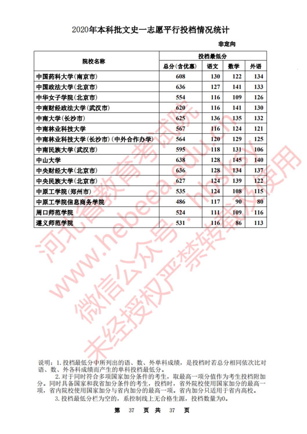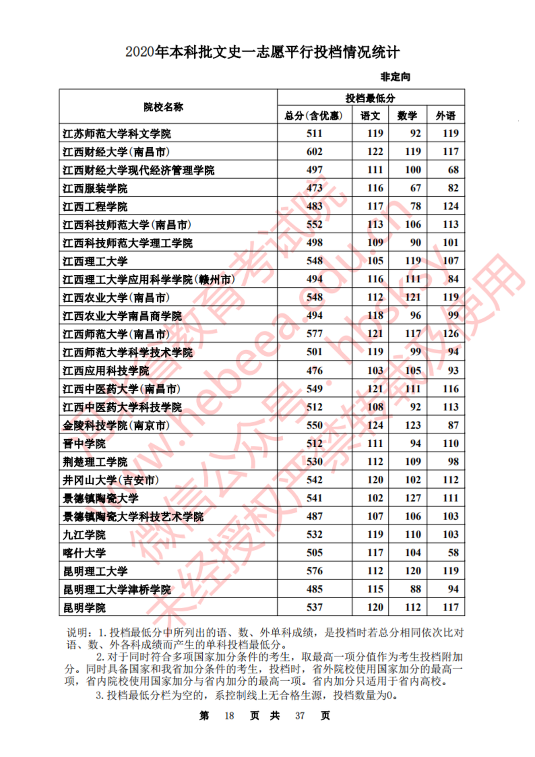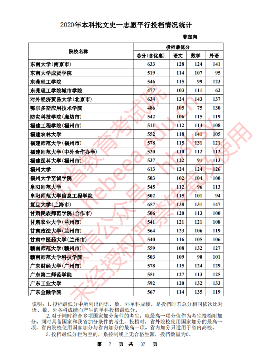 河北:2020年本科批一志愿平行投档情况统计(文史)