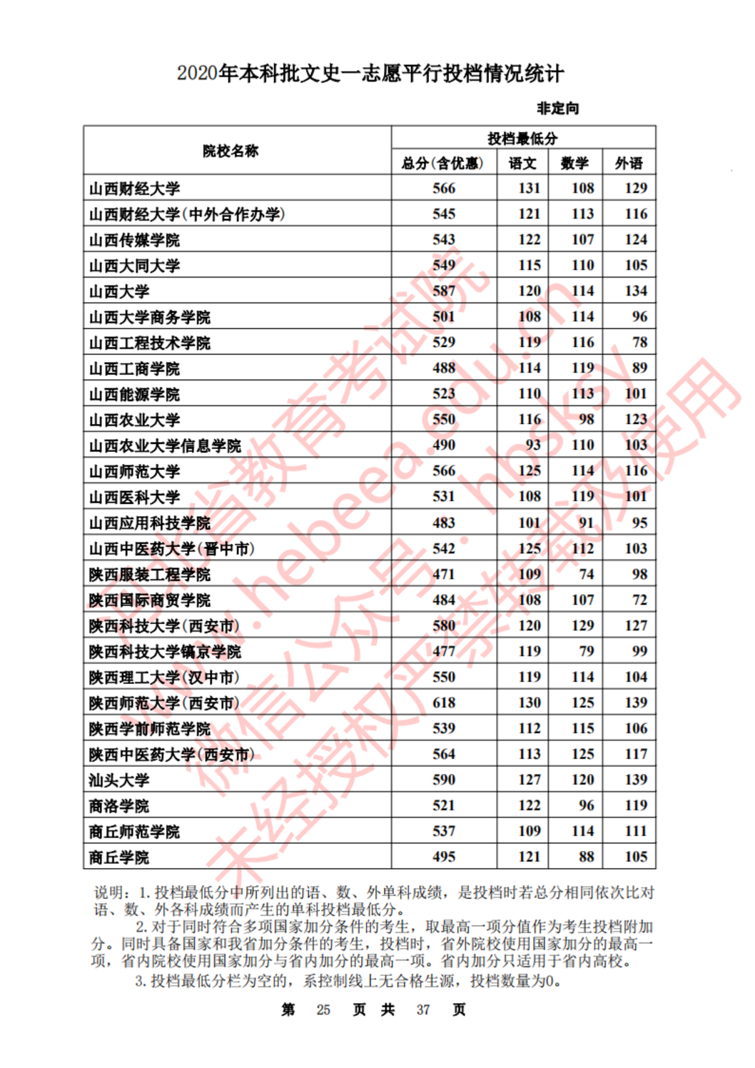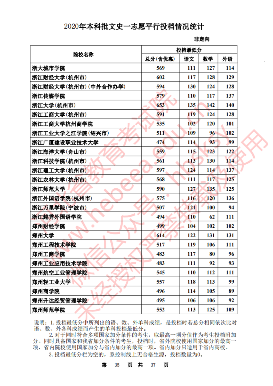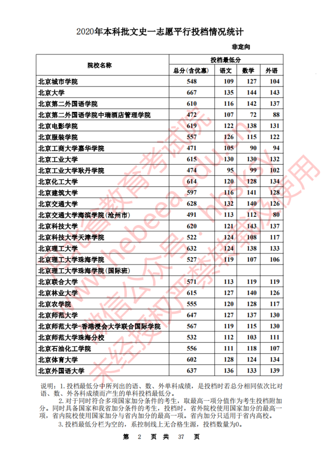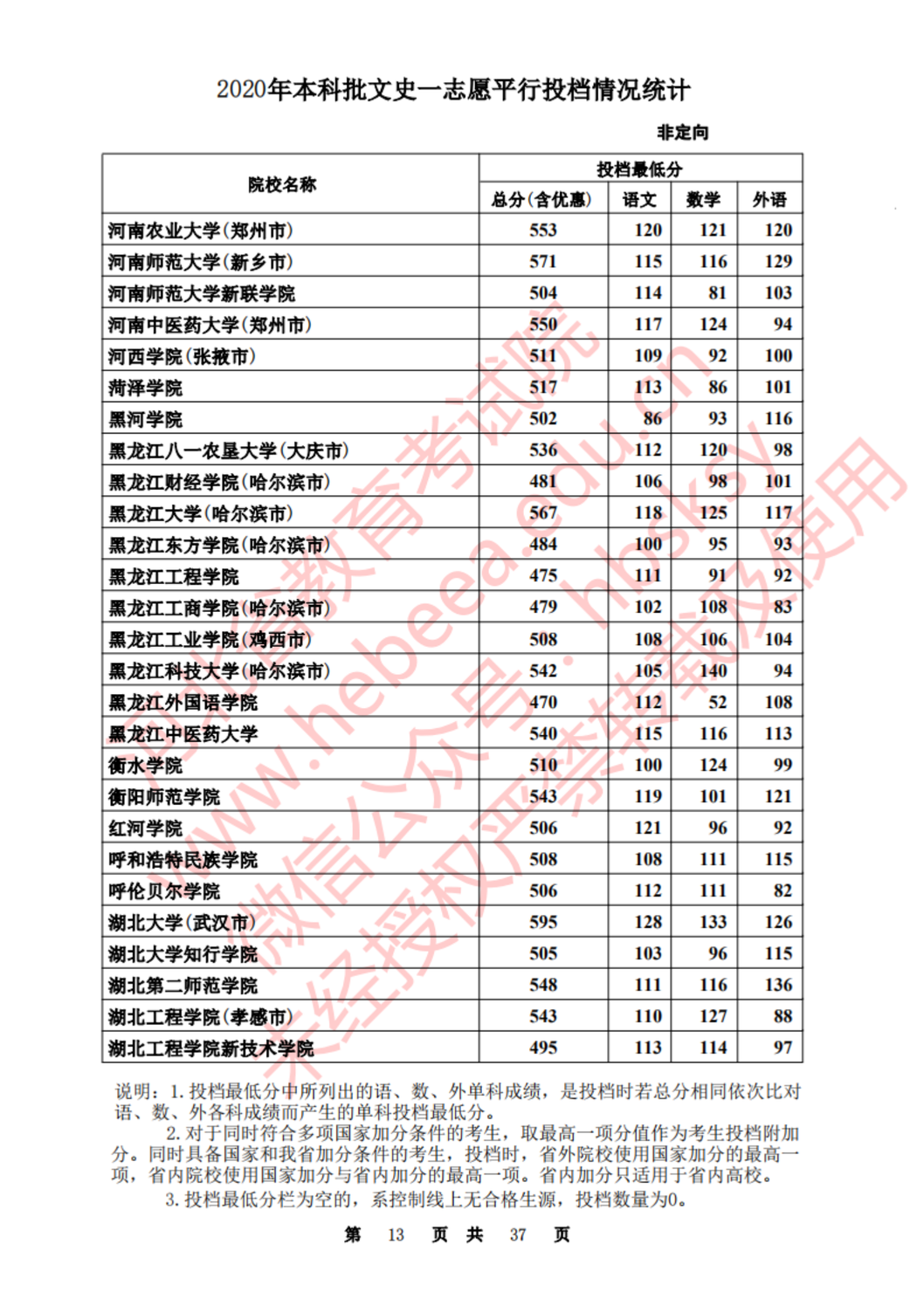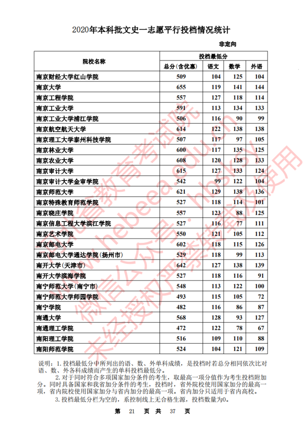 河北:2020年本科批一志愿平行投档情况统计(文史)