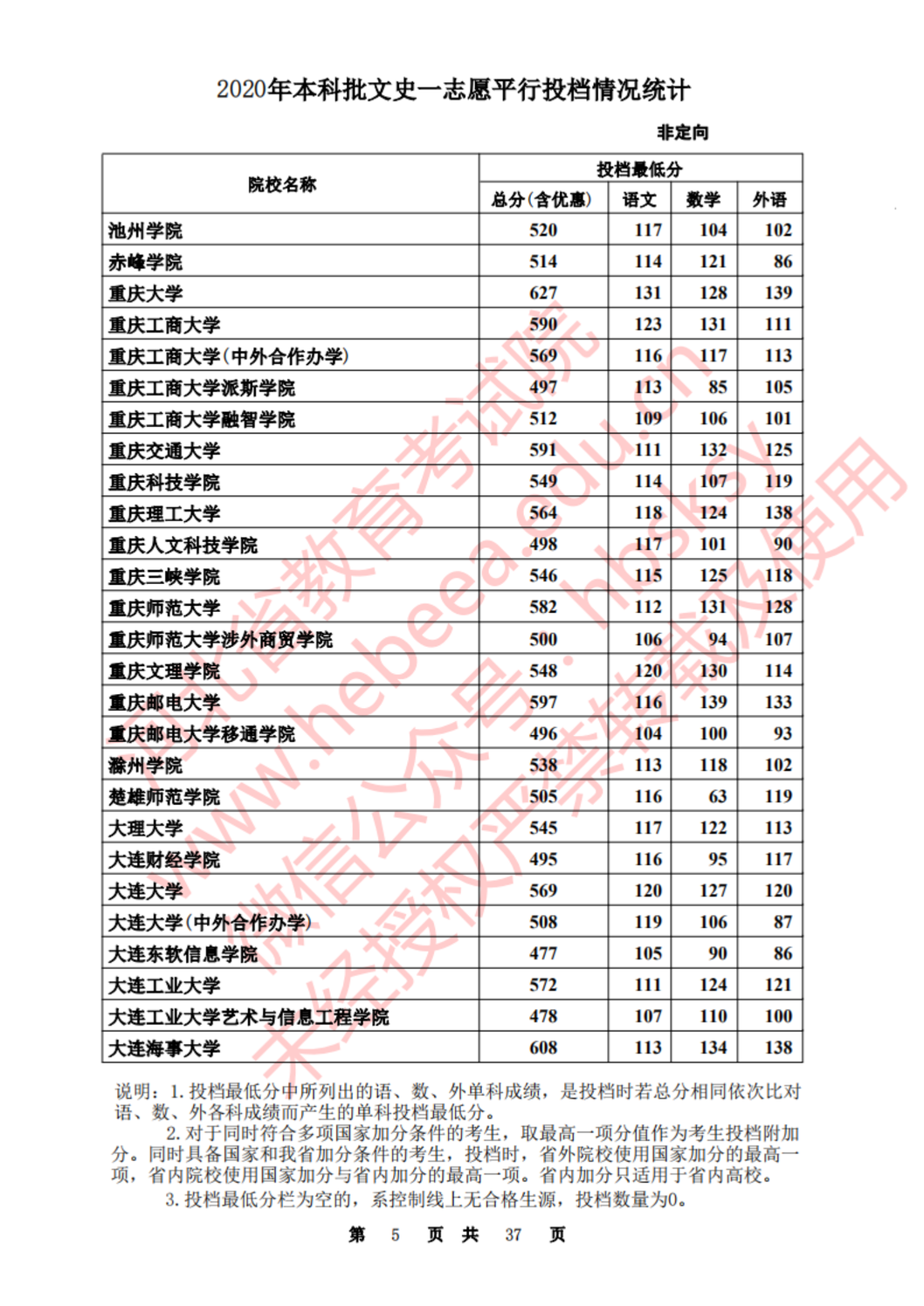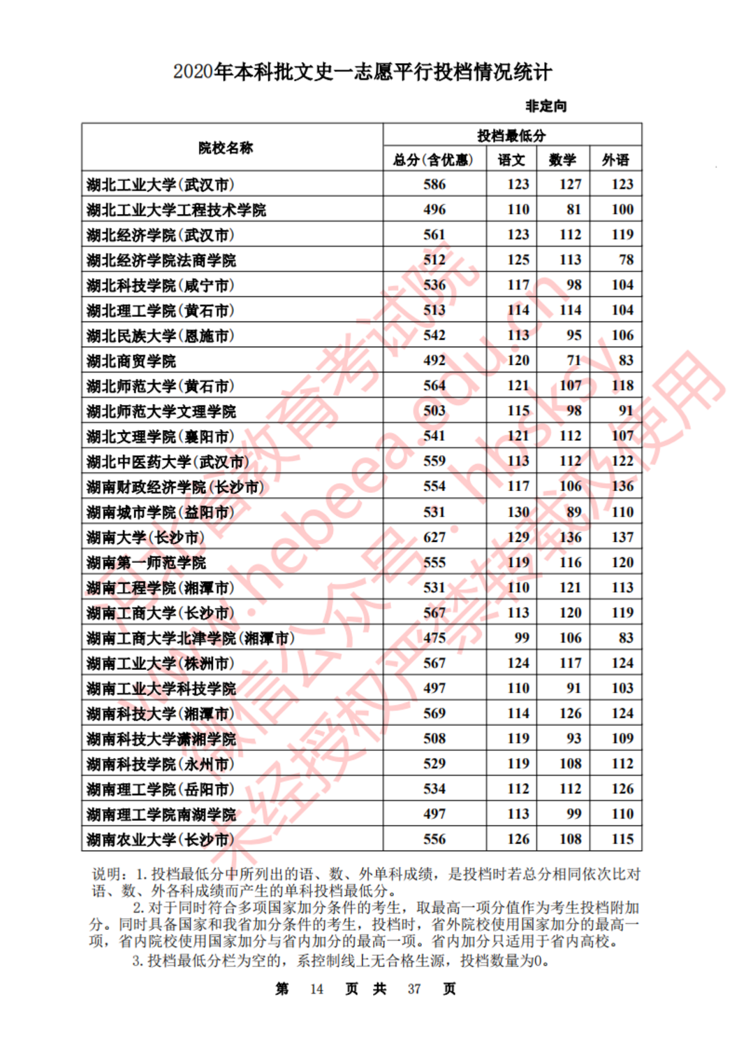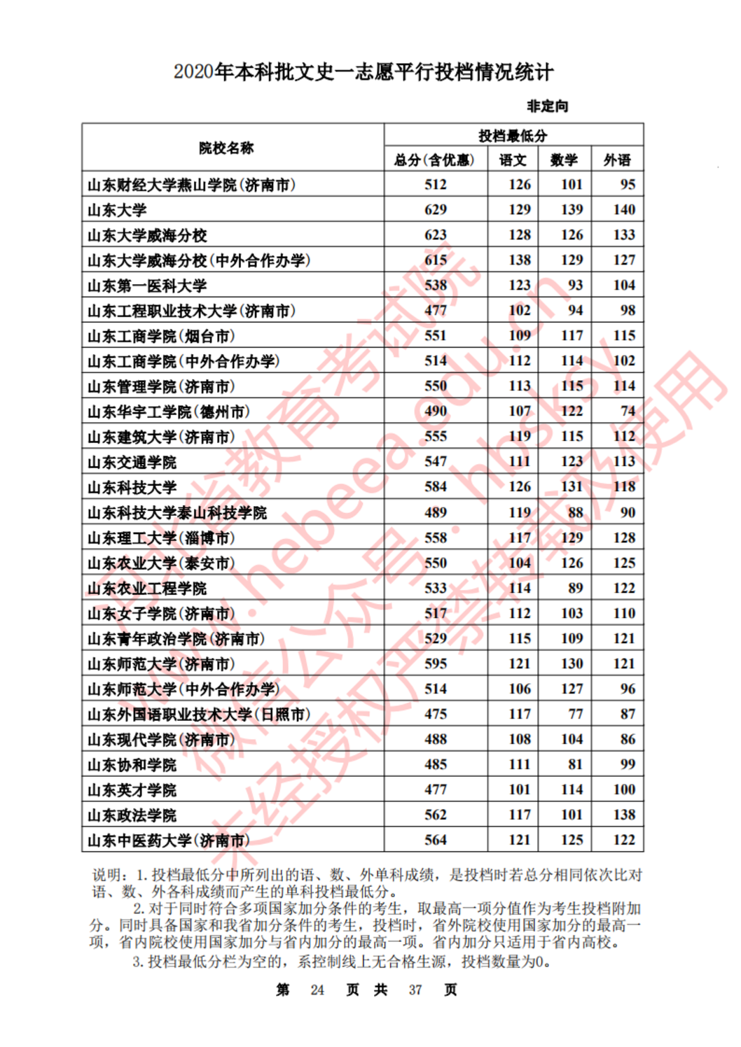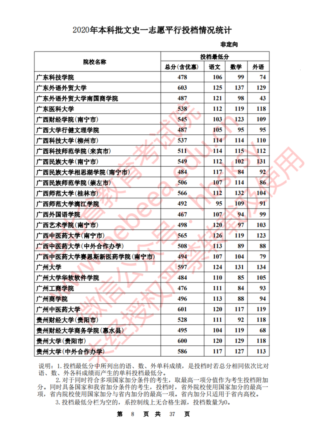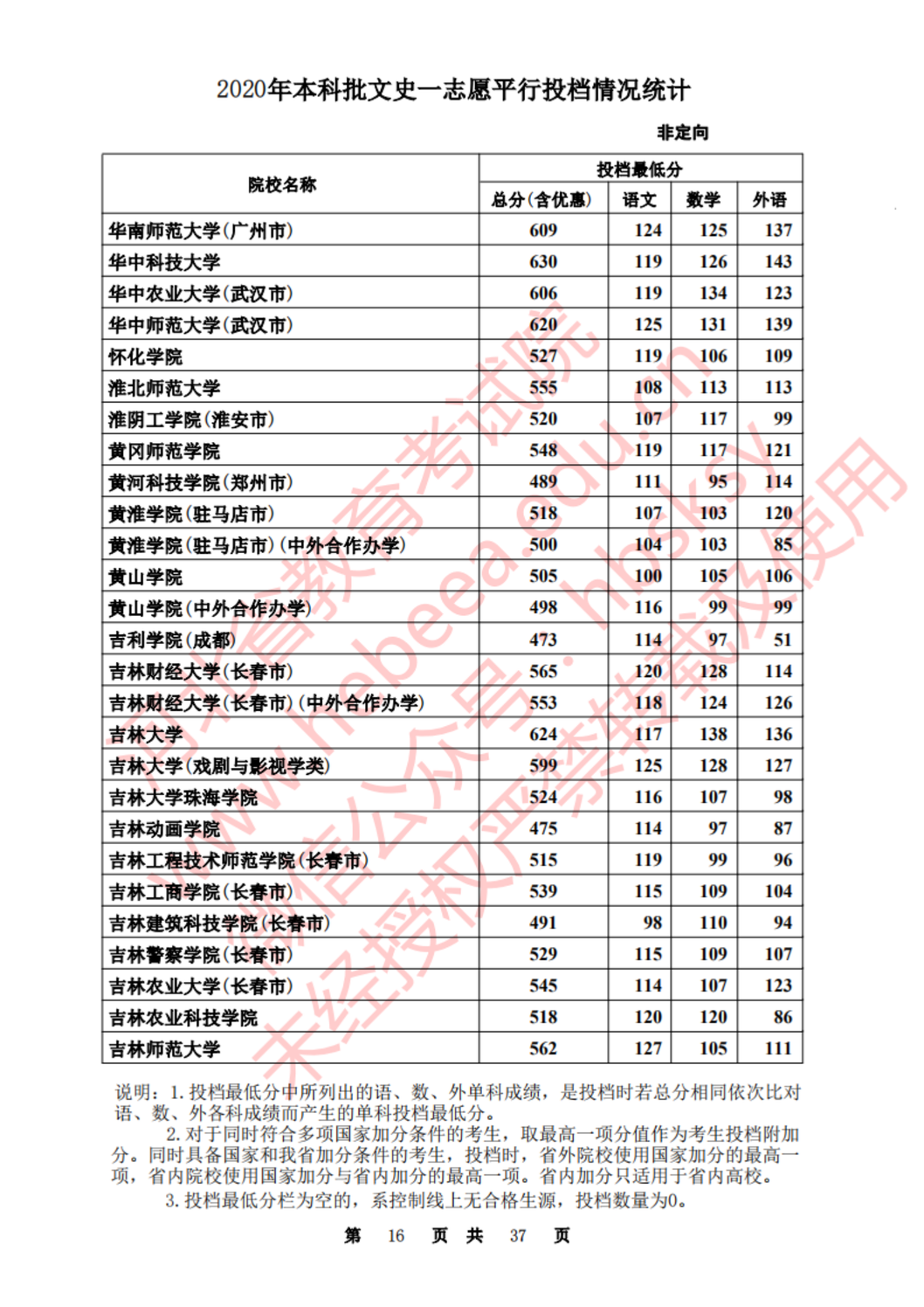河北:2020年本科批一志愿平行投档情况统计(文史)