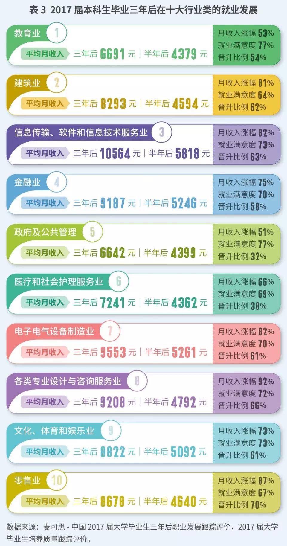 在《就业报告》中,对2020届本科毕业生就业数量(即就业比例=某类行业中就业的毕业生人数/全国同届次毕业生就业总数)较大的前十位行业类的就业质量进行了分析。