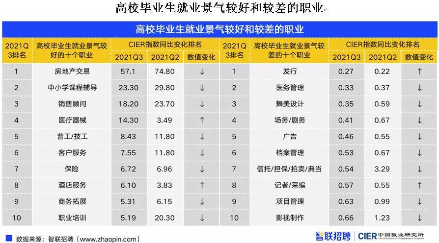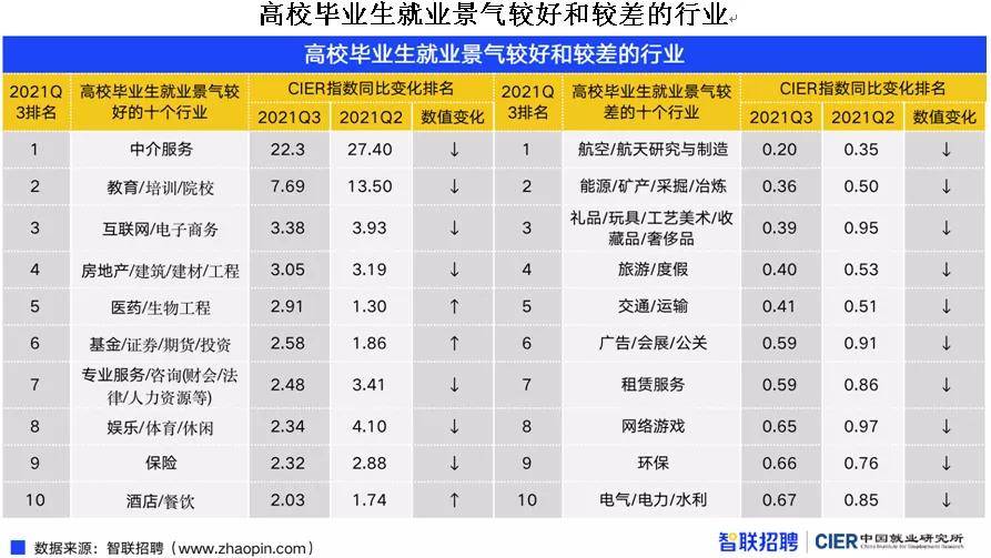 随着国内疫情防控向好、经济发展持续恢复,2021年三季度高校毕业生就业景气指数环比下降,但同比上升。