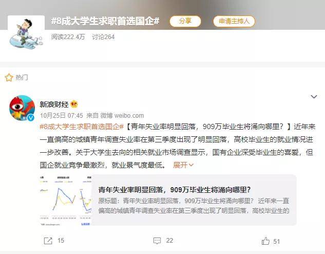 今年的大学毕业生人数约909万人。大学生就业难吗?最想选择的行业是什么?近日#8成大学生求职首选国企#上了热搜——