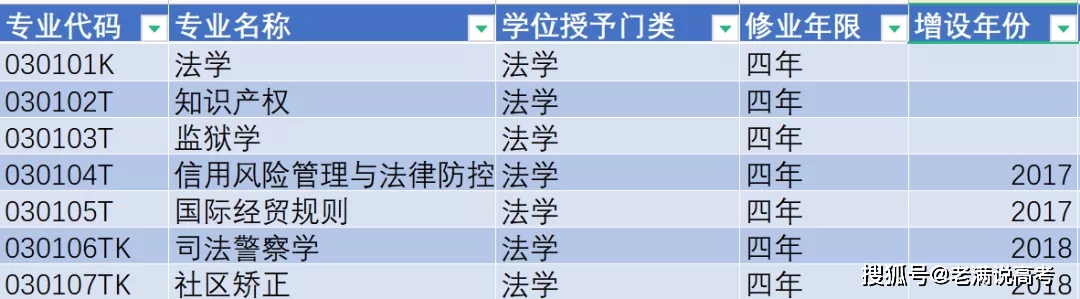 法学类下设7个专业,均为特设或控制专业: