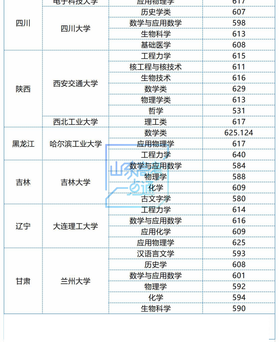 比较稳妥的一个分数就是高考600分以上,因为招收强基计划的高校真的都是强校,它的哪一个专业分数都不低。总体而言,低于600分的很少。因为在报考的时候还不知道自己的详细分数,所以预估高考成绩在600分左右只要报机会还是有的。比如说古文字这些稍冷门的可以再低一点,570、580左右,这样的分数其实也是可以尝试报考。相对而言,600分以上只要能选准了还是有些把握的,610、620以上的把握性就比较大了。