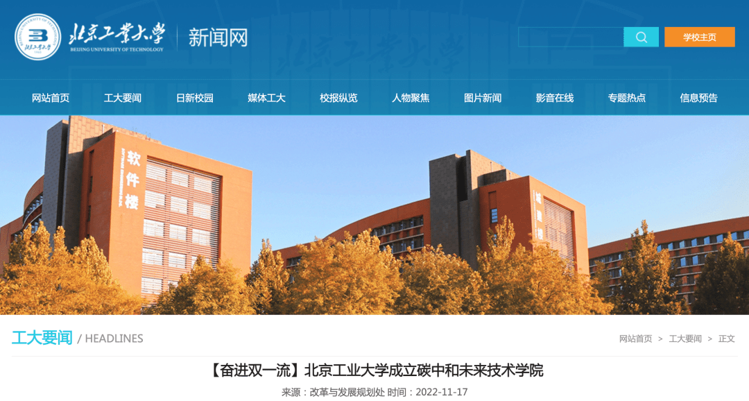 北京工业大学于11月17日成立碳中和未来技术学院。学院旨在打造成为碳达峰、碳中和领域具有前瞻性和战略性的未来科技创新领军人才培养新模式试验区。
