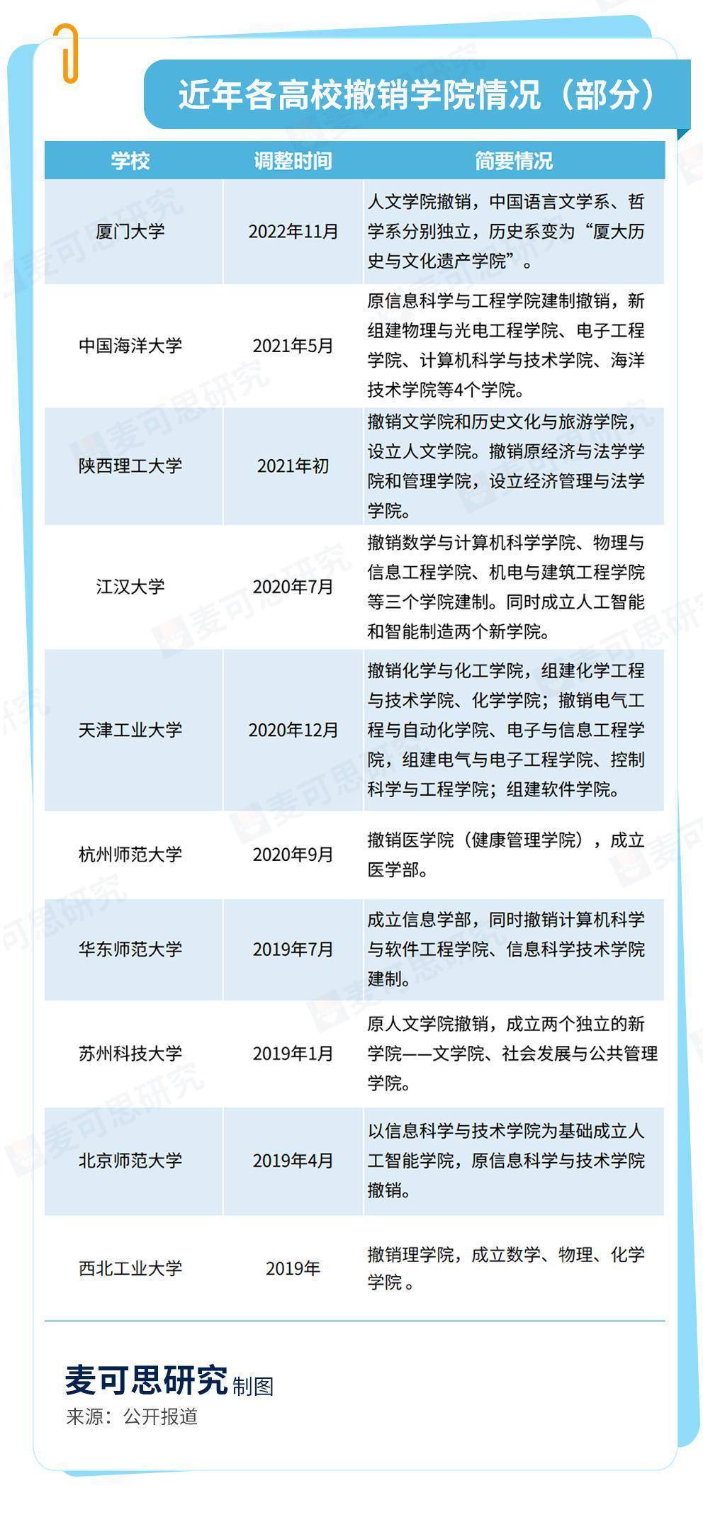 除了上表统计的撤销学院情况外,不少高校都进行了院系调整,但调整的具体情况并不相同。