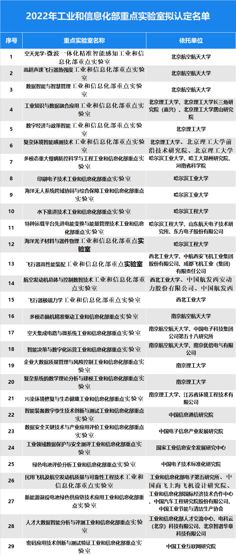 12月2日,工业和信息化部发布《2022年工业和信息化部重点实验室拟认定名单公示》,共有29个重点实验室入选。