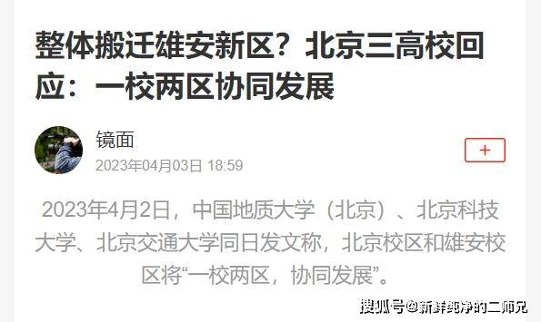 换言之,京校外迁,似乎只是新建一个雄安新区,而北京校区仍旧存在,校本部大概率也不会动。