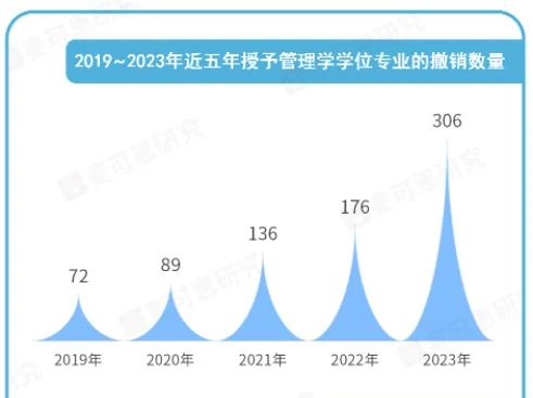 除了一批专业放弃“管理学”学位,转设为工科学位,过去几年,在我国高校本科专业经历的大规模调整中,授予管理学学位的专业撤销数量也连年增长,2023年已达到306个(不含二学位)。