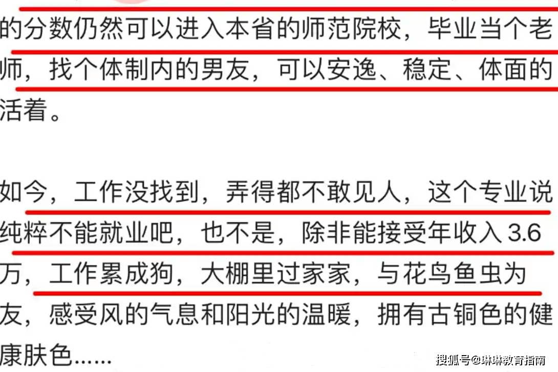 按她的设想,如果读了师范,毕业后能直接成为教师,拥有稳定的体制内身份,过上安稳体面的生活;即便不去师范,选择其他普本,自己至少能选择一个热门的好专业,起码考公不至于这么艰难。