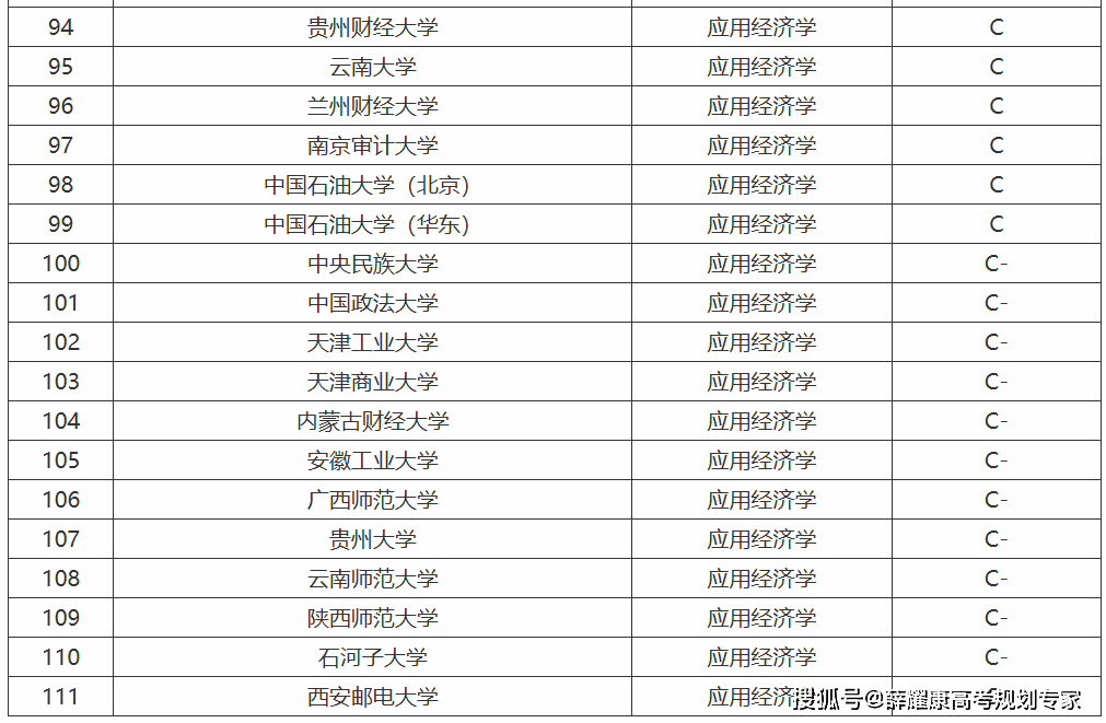 中国人民大学A+级,南京大学和西北大学A-级,西南财经大学B+级