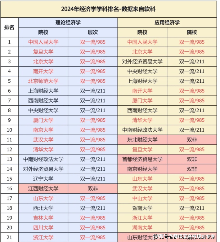 ✅应用经济学:中国人民大学、北京大学、对外经济贸易大学、中央财经大学、上海财经大学、南开大学、厦门大学 、西南财经大学、清华大学、中南财经政法大学