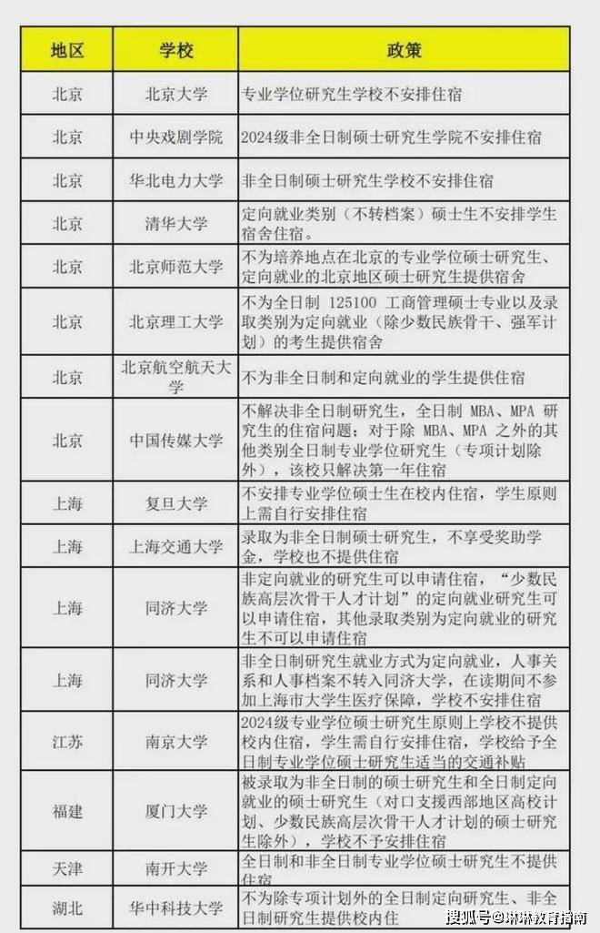 复旦大学,除专项计划外,不安排专业学位硕士生在校内住宿;南开大学,全日制和非全日制专业学位硕士研究生不提供住宿;对外经济贸易大学:从2026年起,专业学位硕士研究生学校不提供住宿(全日制专项计划除外)。