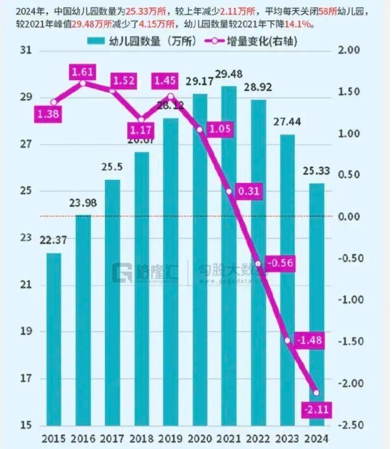 这也是为啥一年关停2.11w幼儿园,两年减少1000w+在园幼儿的根源。