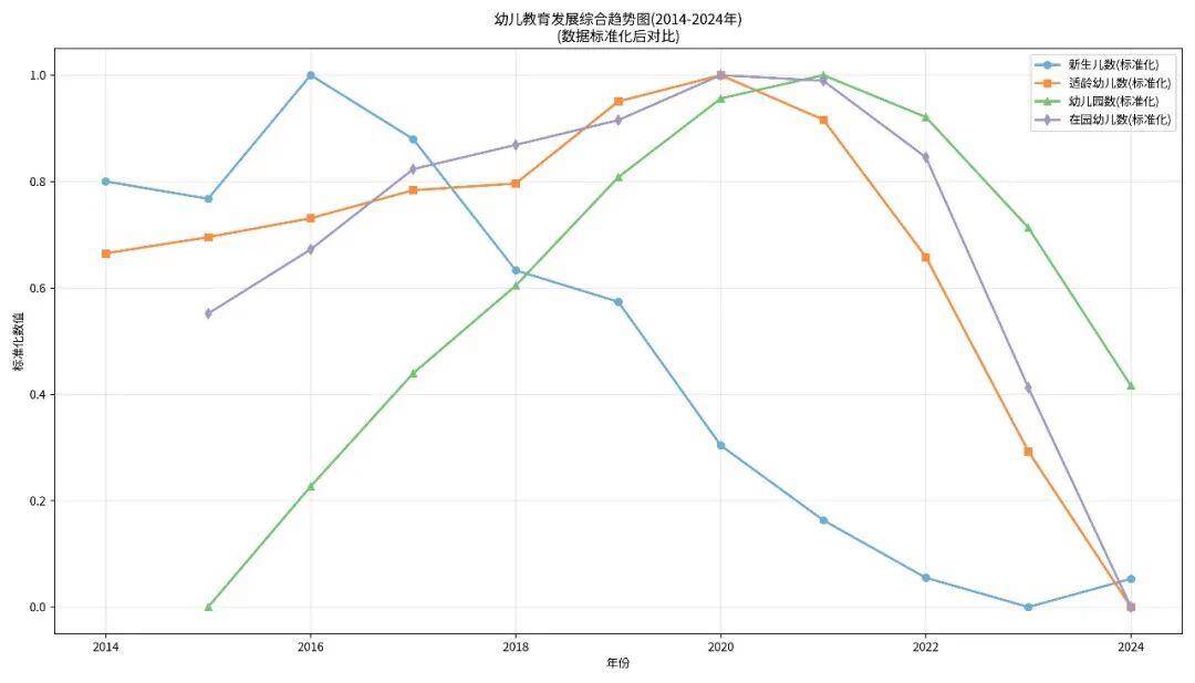 我们可以统计、预判2014年至2027年适龄幼儿数、幼儿园数,以及在园幼生数。