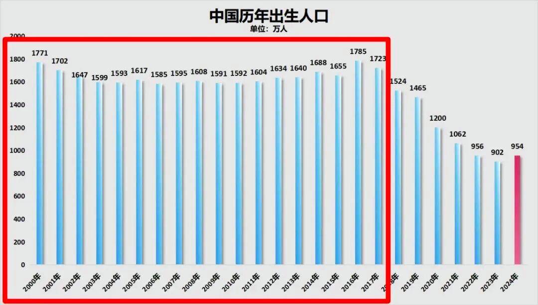 先上张图,根据2000年至2024年的新出生人口。