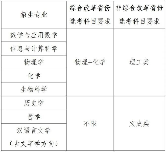 学校坚持把立德树人作为根本任务,以服务国家重大战略需求为人才培养导向,按照导师制、小班化、个性化的模式组织课程学习和科研训练,坚持以基础学科为本源,开展重点学科交叉融合,为未来高阶发展方向培养夯实基础。在培养过程设有动态进出机制,确保强基计划培养工作保持高水平,培养人才保证高质量。对符合培养要求的强基计划学生实行本研衔接培养。进入研究生阶段后,学生主要在强基计划所在基础学科专业进行培养,部分学生也可根据培养方案在高端芯片与软件、智能科技、新材料、先进制造和国家安全等关键领域以及国家人才紧缺的人文社会科学领域进行学科交叉培养。本研衔接专业范围见各强基计划招生专业培养方案,具体专业招生名额以当年度学校公布的工作方案为准。培养方案要点如下: