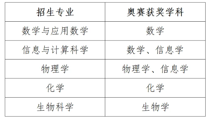 相关学科领域具有突出才能和表现的考生,破格入围条件为高中阶段全国中学生(数学、物理、化学、生物学、信息学)奥林匹克竞赛全国决赛二等奖及以上。