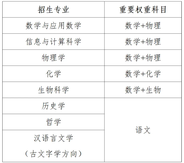 入围成绩=重要权重科目高考成绩*1.5+其他科目高考成绩之和