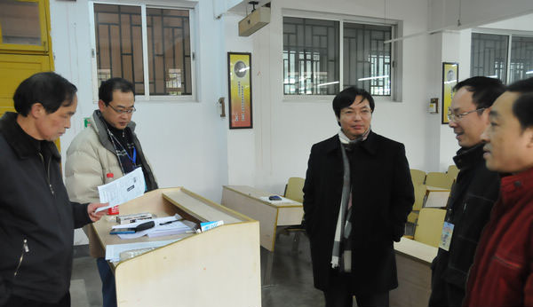考点主考李传起副校长在考务室听取研究生学院负责人汇报考场情况