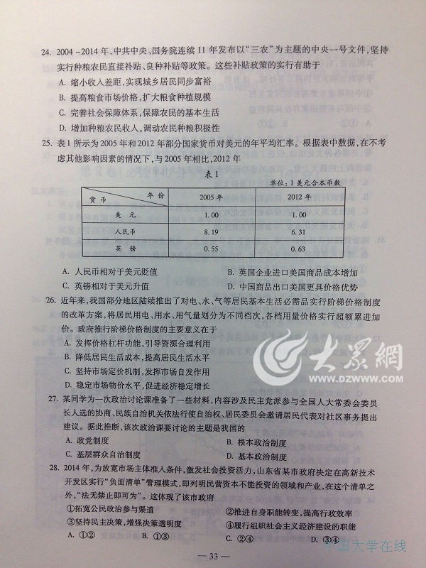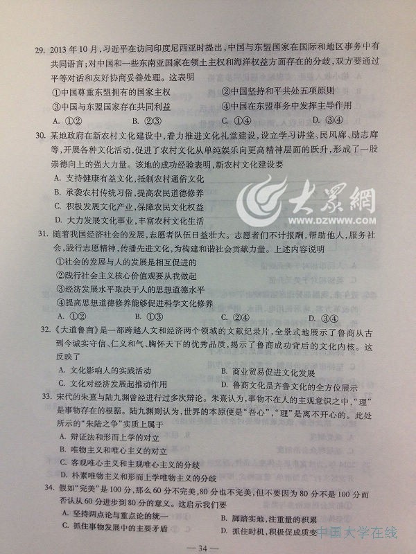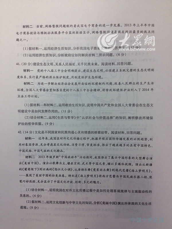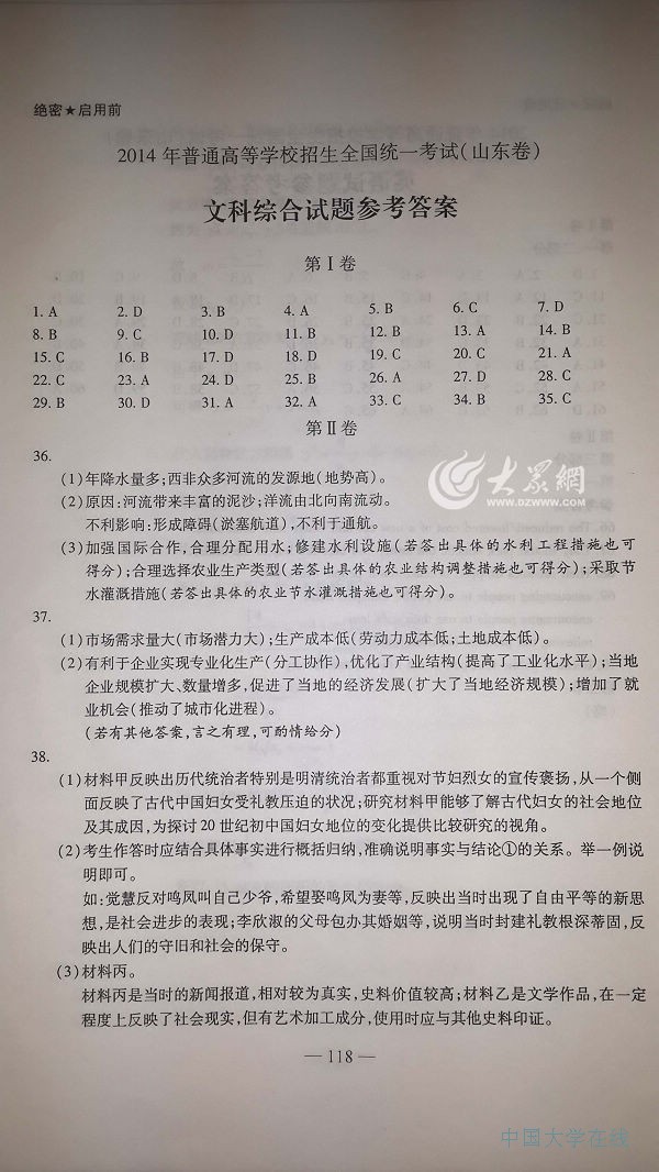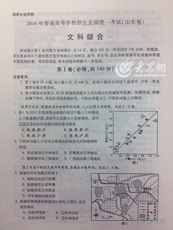 今天下午,2014年山东高考落下帷幕,大众网第一时间对试题及答案予以公布。以下为文科综合试题: