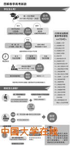11月中旬,各试点高校将向社会公布经审核的春季高考招生章程,包括参与春季招生的专业。考生可以通过各试点高校、市教委网站获悉相关招生章程信息。