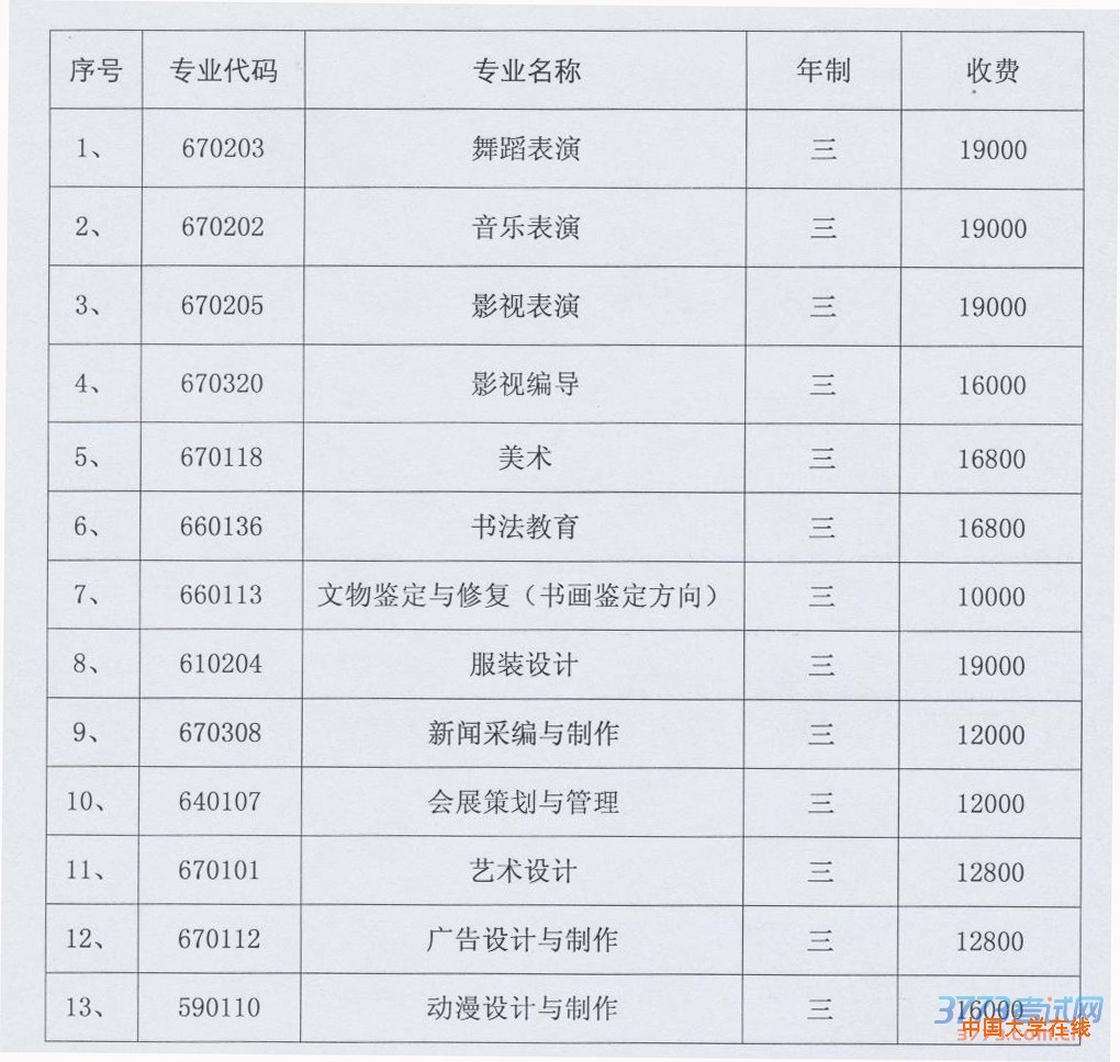 2015年北京艺术传媒职业学院招生专业一览表