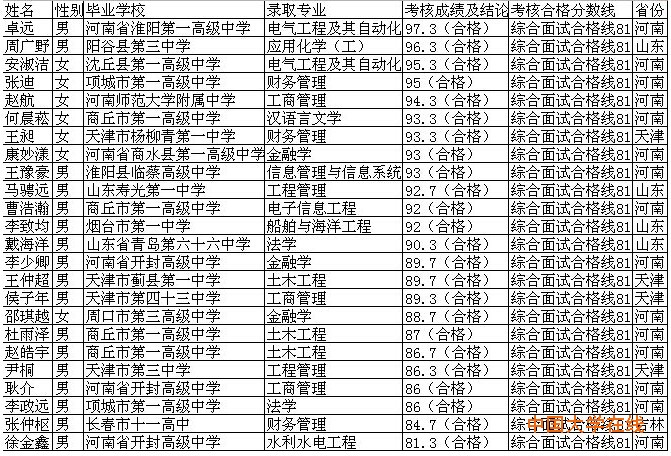 根据教育部保送生招生录取相关规定以及《天津大学2015年保送生招生简章》的有关规定,我校于2015年1月25日举行了相关测试。根据考生的测试成绩,经学校招生工作领导小组讨论,现将拟录取考生名单公示如下,公示期为3月31日至4月7日。