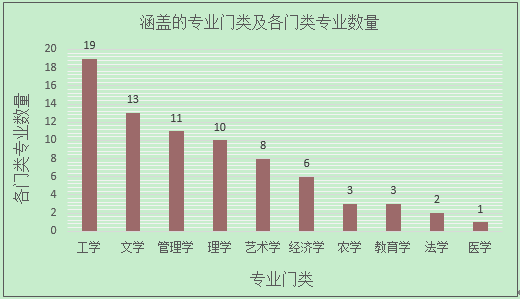 在有新增专业的39所教育部直属高校中,新增专业共76个,涵盖了本科12大学科门类中,除了哲学、教育学的其余10个学科门类,其中以属于工学学科门类的专业数量最多,有19个,其次是属于文学学科门类的,为13个专业,涵盖的学科门类及专业数量,如下图所示: