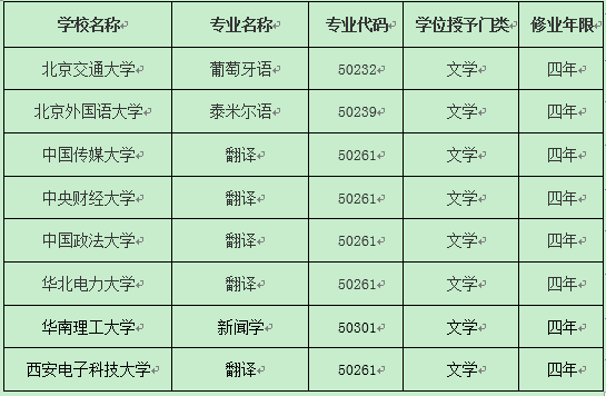 在新增的、属于文学学科门类的基本专业中,以外国语言文学类增设频率最高,除了华南理工大学的新闻学属于新闻传播学类,其余均属于外国语言文学类,这新增的外国语言文学类专业中,排在新增首位的是翻译学,共有5所高校新增翻译学专业并设为基本专业,分别是中国传媒大学、中央财经大学、中国政法大学、华北电力大学(北京)和西安电子科技大学。