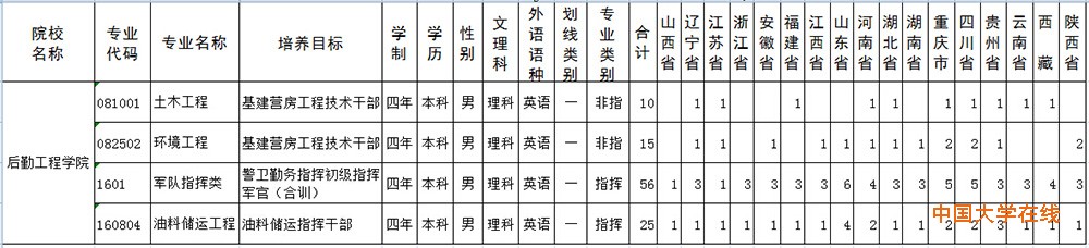 2015年后勤工程学院招生计划