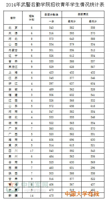 2014年武警后勤学院招生分数线