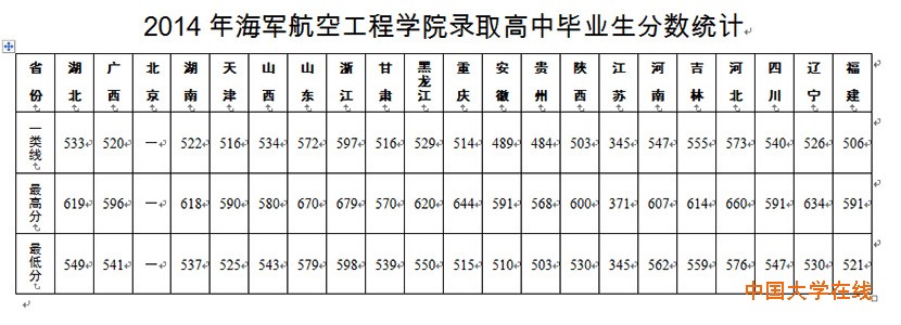 2014年海军航空工程学院招生分数线