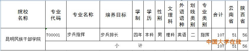 2.昆明民族干部学院步兵指挥专业,在陕西的56名计划从西安市八一民族中学招生,学员毕业后分配到驻疆部队工作。