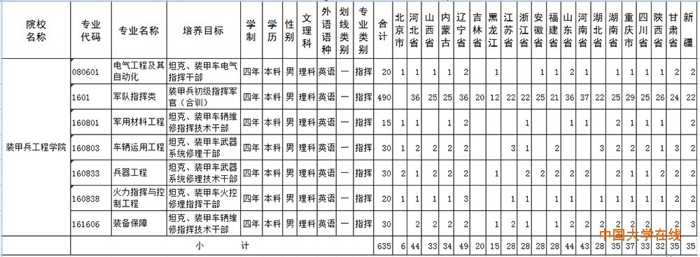 2015年装甲兵工程学院招生计划