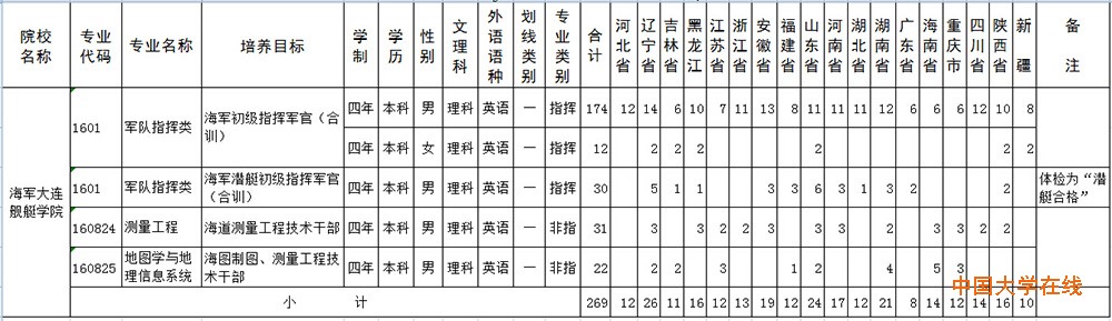 2015年海军大连舰艇学院招生计划