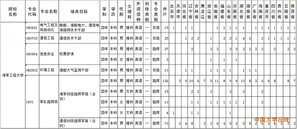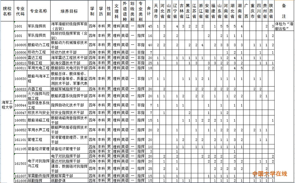 2015年海军工程大学招生计划