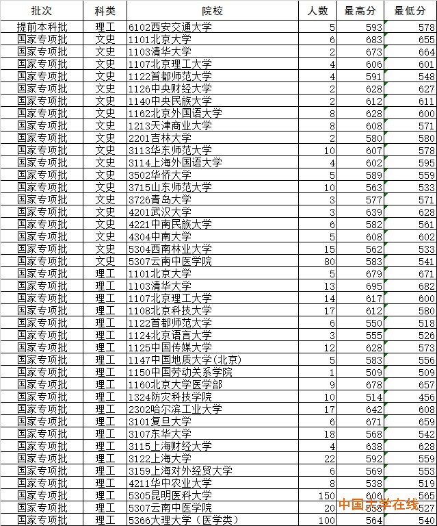2015国家专项批次昨录云南考生630名