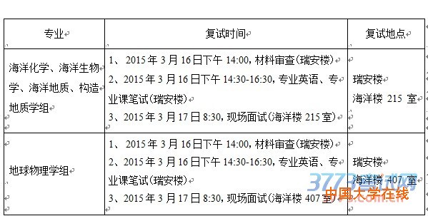 同济大学海洋与地球科学学院2015年硕士研究生招生考试复试安排