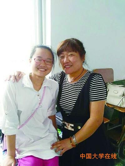 拿到北师大的录取通知书后,斯雯(左)和班主任贾复娟都十分高兴