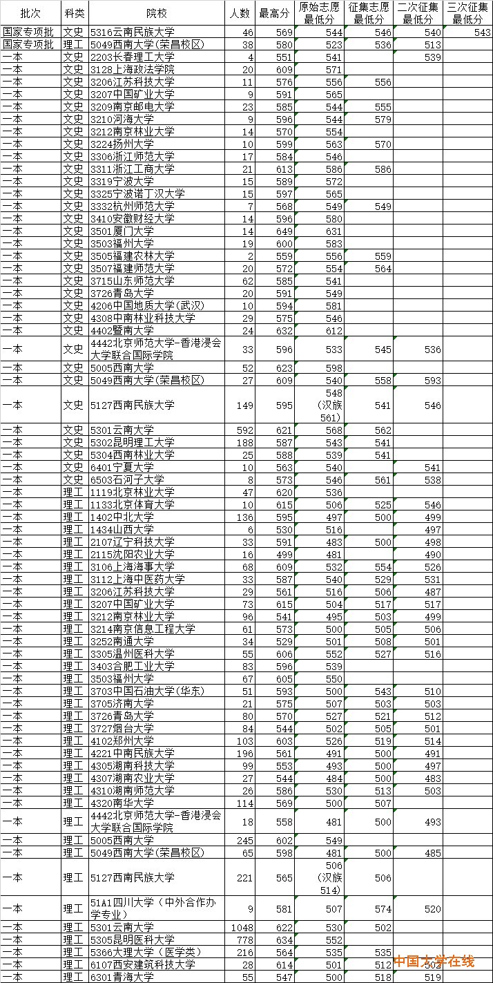 2015年7月24日云南高考录取院校分数线日报
