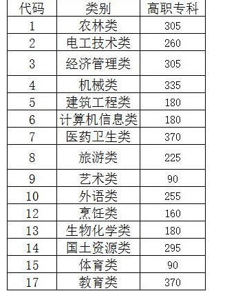 三校生高职(专科)批次各类别成绩要求为: