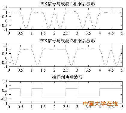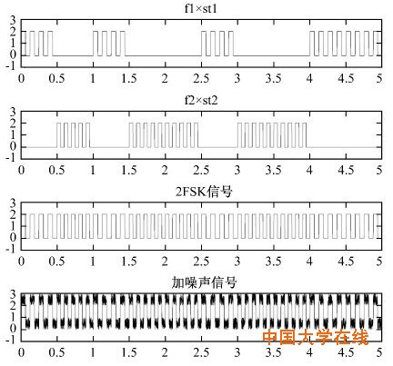 图5 基带信号相乘,2FSK,叠加传输中产生的噪声信号