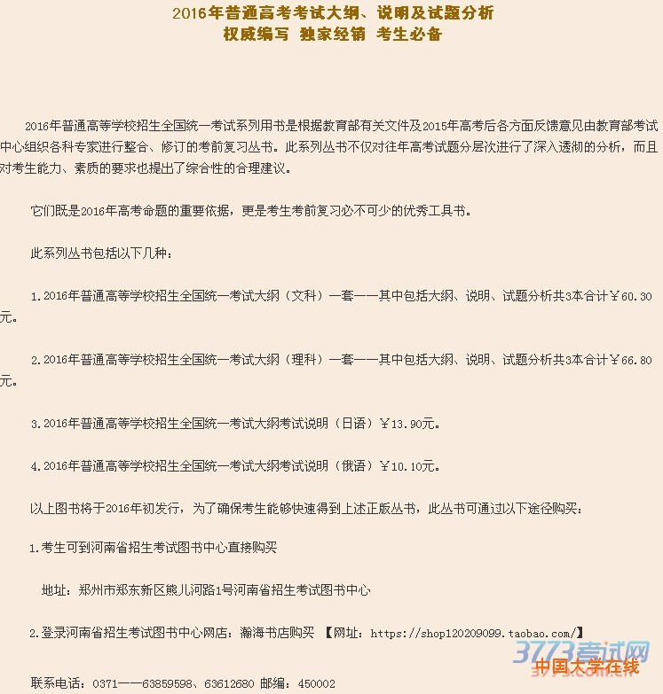 2016年河南高考考试大纲、说明及考题分析 [2015.11.20]