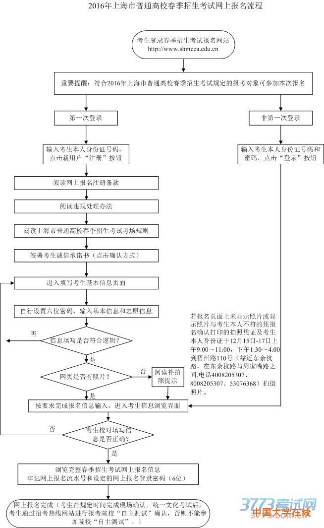 2016年上海市普通高校春季招生考试网上报名流程图