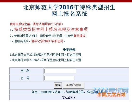 北京师范大学(珠海校区)2016年特殊类型招生网上报名系统