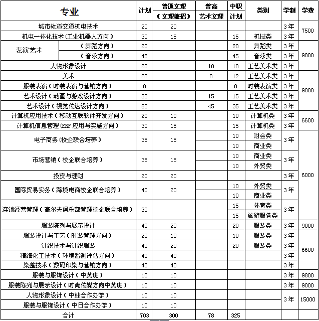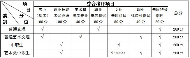 注:报考表演艺术(舞蹈方向)、表演艺术(音乐方向)、人物形象设计、美术、连锁经营管理(高尔夫俱乐部管理校企联合培养)专业的中职考生须参加职业适应性测试,报考其余专业的中职生无需参加;报考人物形象设计、美术、艺术设计(动画与游戏设计方向)、艺术设计(视觉传达设计方向)专业的普高艺术文理科考生须参加职业适应性测试。