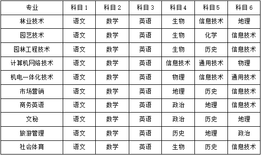 第十四条 学业水平测试(高中会考)相关科目等第成绩折算实行指定课目核定,总分180分,各相关专业的核定课程如下表: