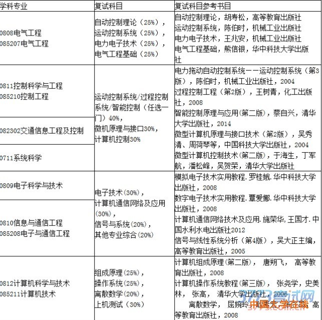 2016年中南大学信息科学与工程学院考研复试专业综合课考试科目